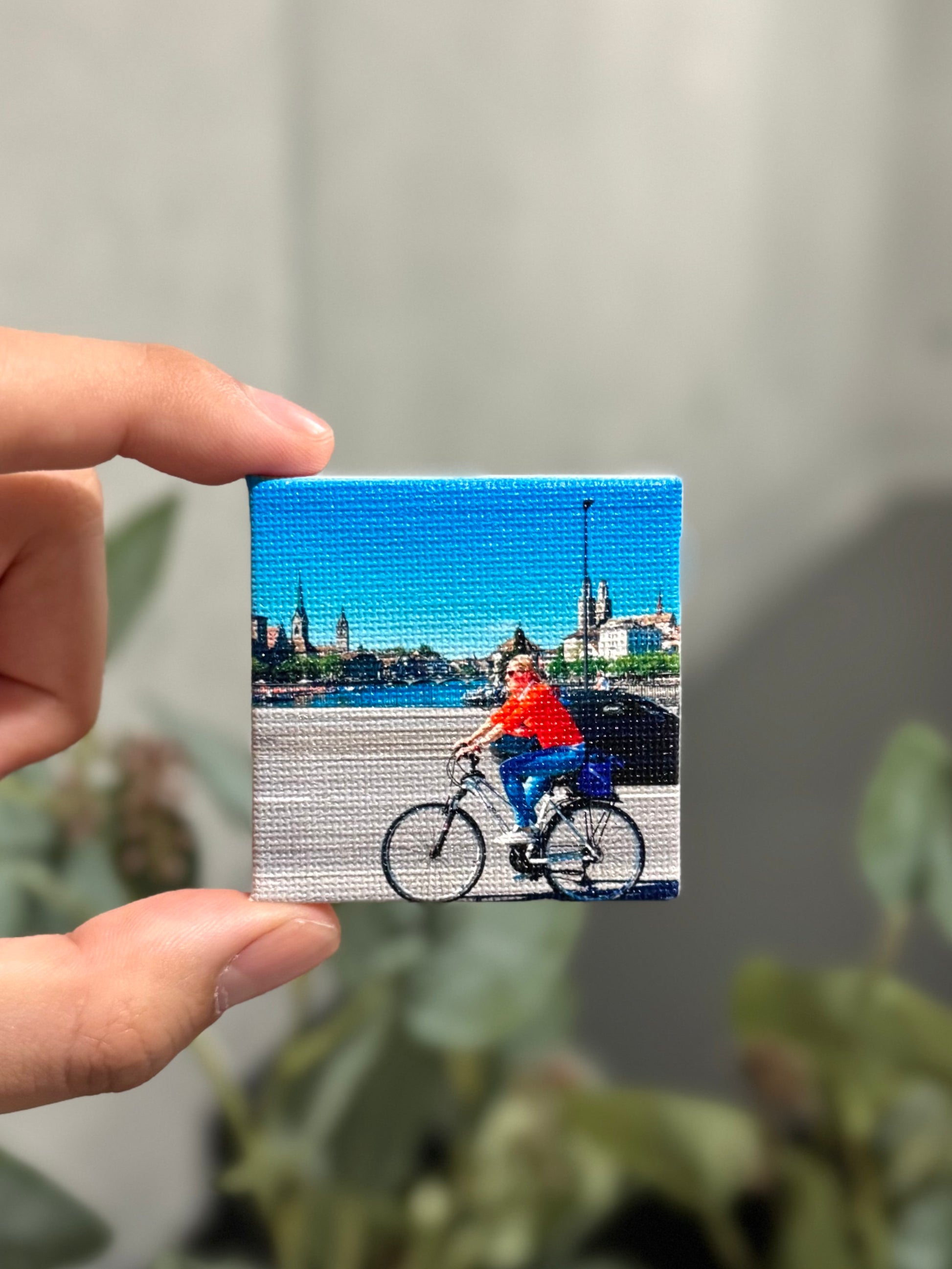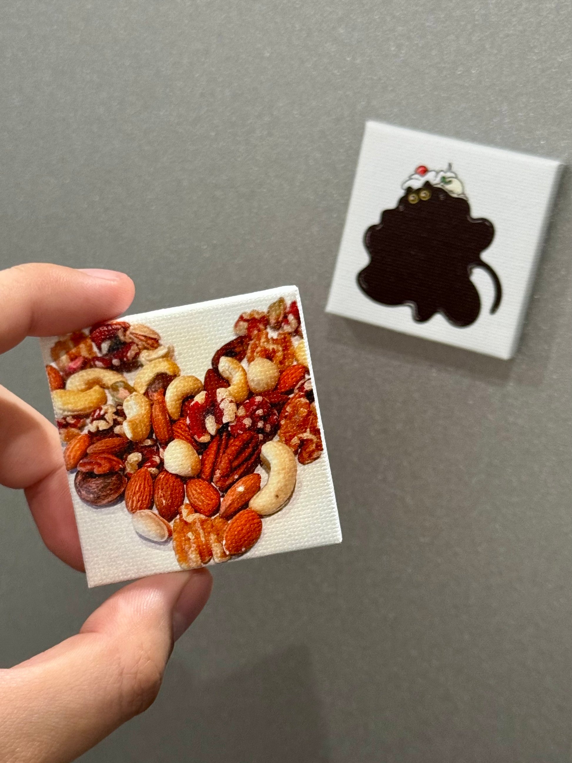 小さくても存在感のあるミニキャンバス。裏面にはマグネットが付いているので、冷蔵庫やデスク周りに飾って楽しめます。