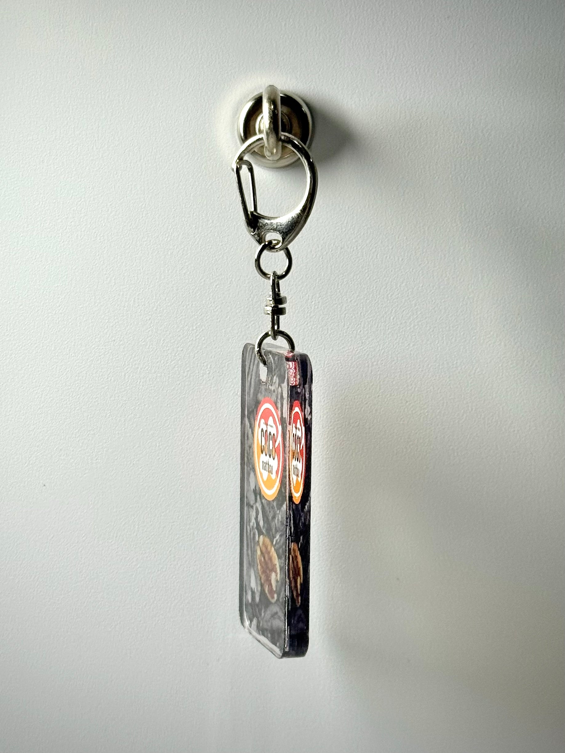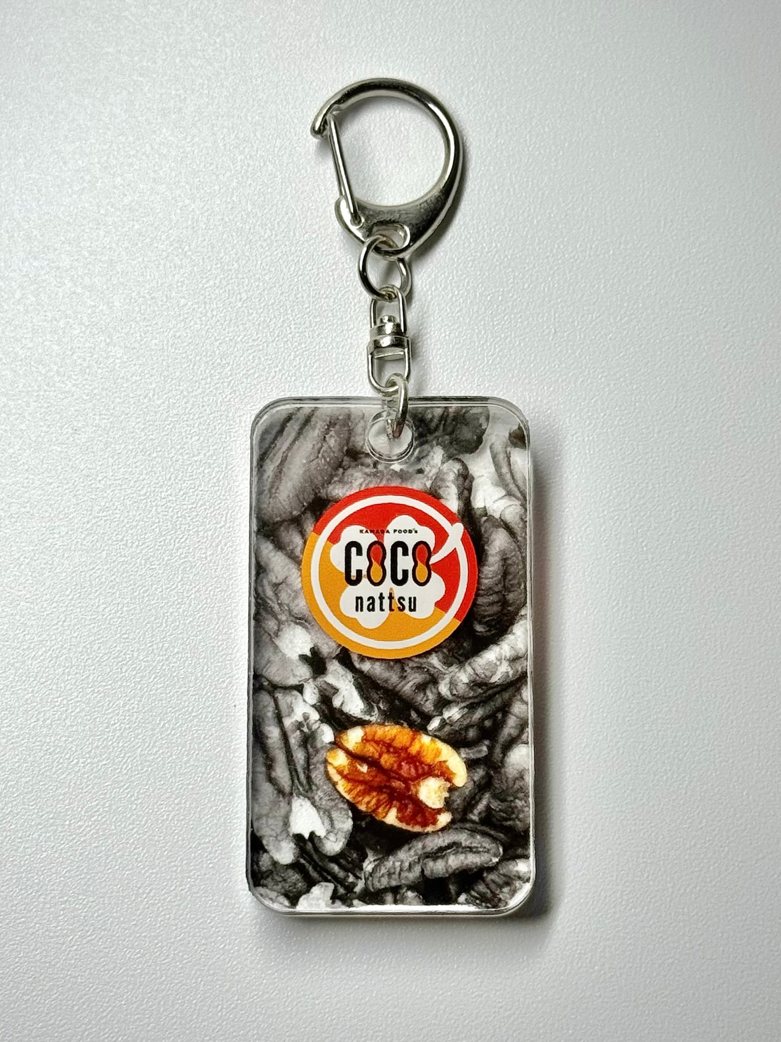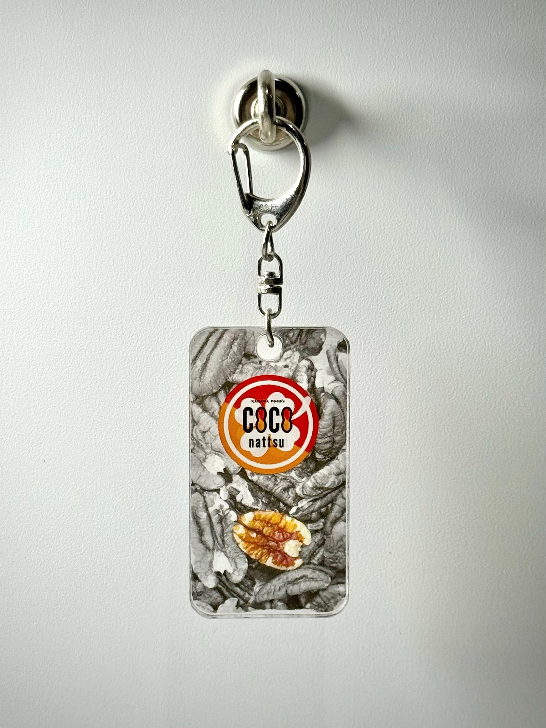 程よい厚みで高級感のあるアクリル素材を使用。美しい透け感と、ピーカンナッツをそのまま閉じ込めたようなデザインが印象的です。バッグや鍵などにアクセントを添えることができます。