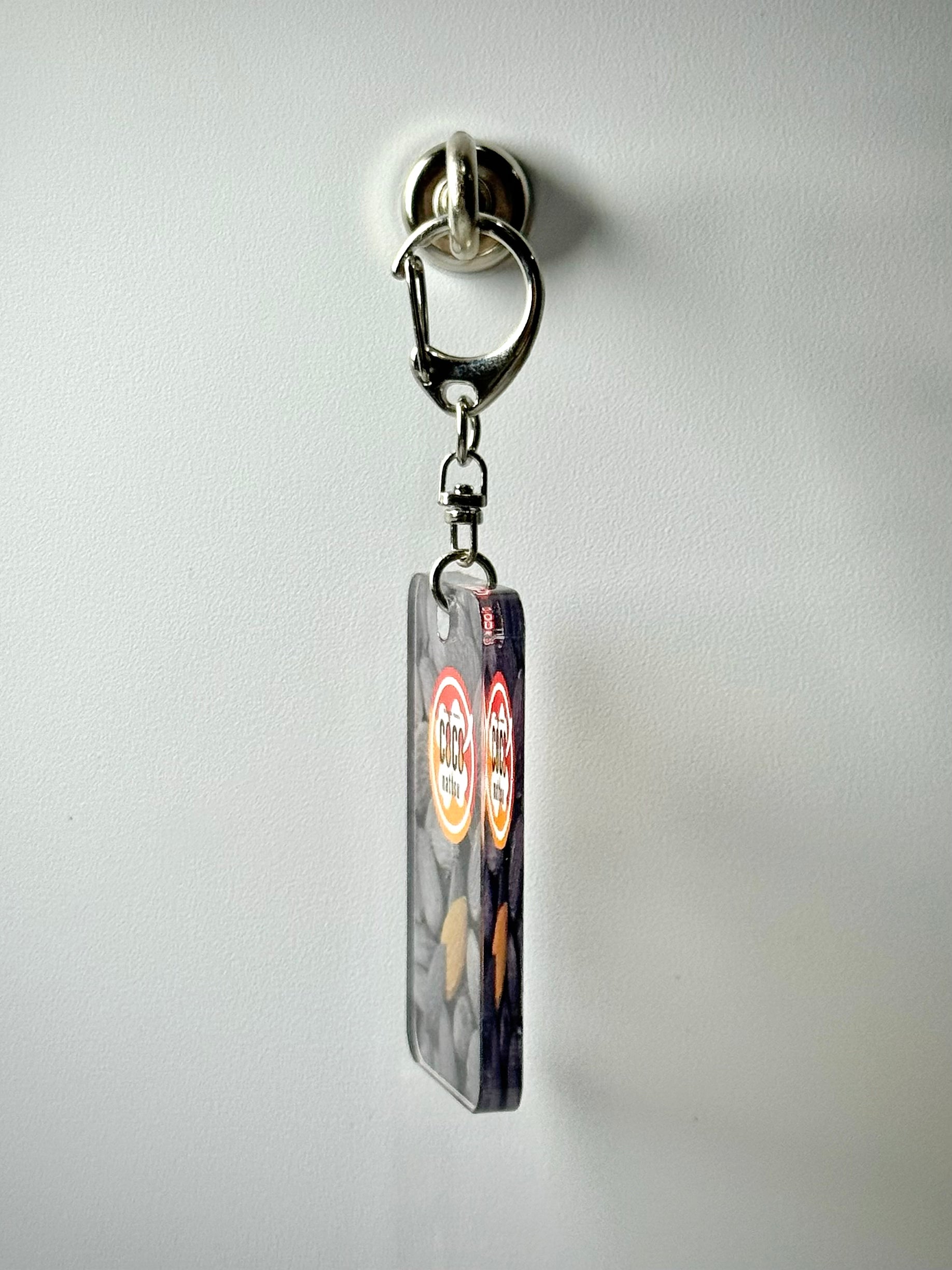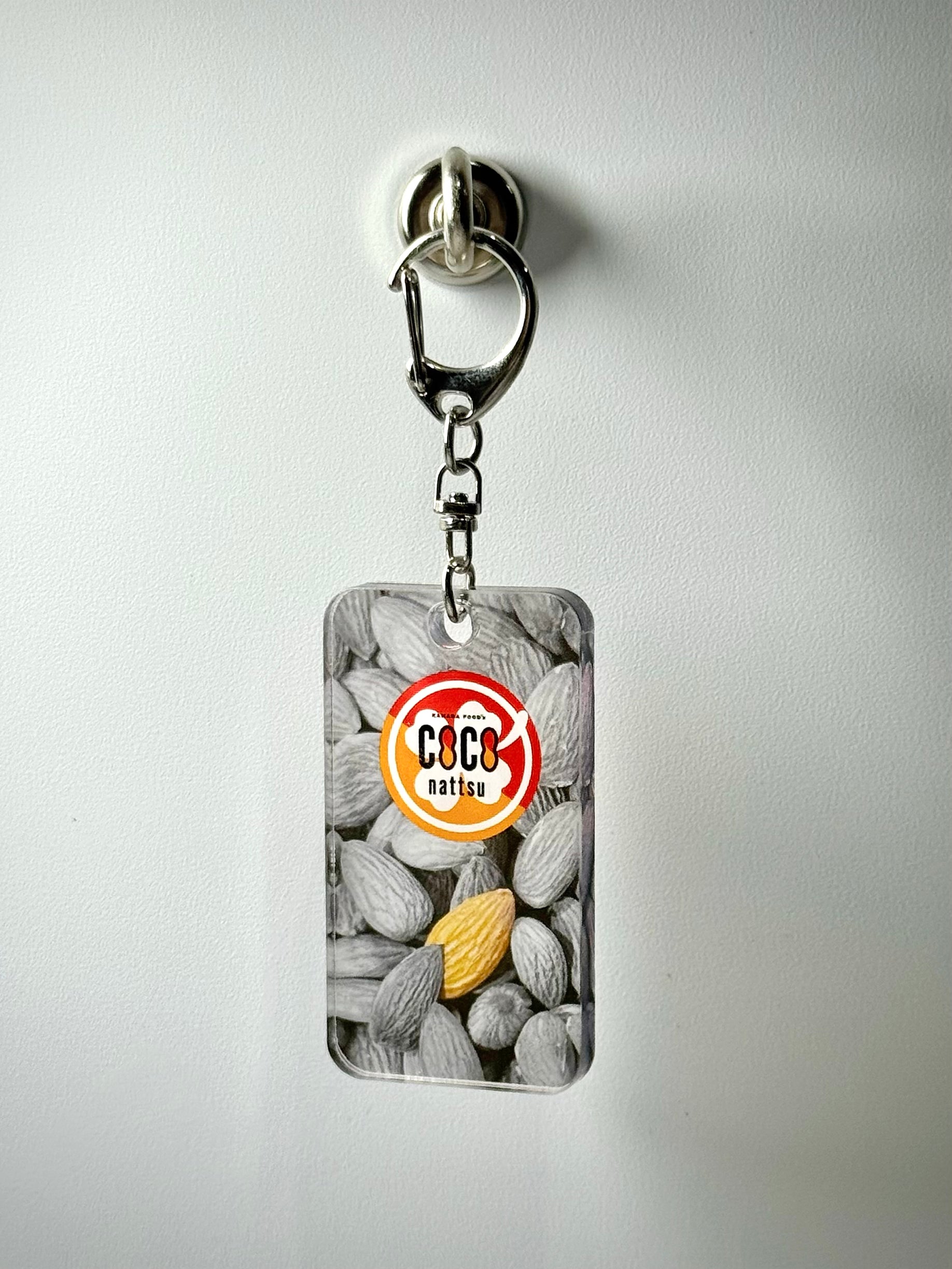 程よい厚みで高級感のあるアクリル素材を使用。美しい透け感と、アーモンドをそのまま閉じ込めたようなデザインが印象的です。バッグや鍵などにアクセントを添えることができます。