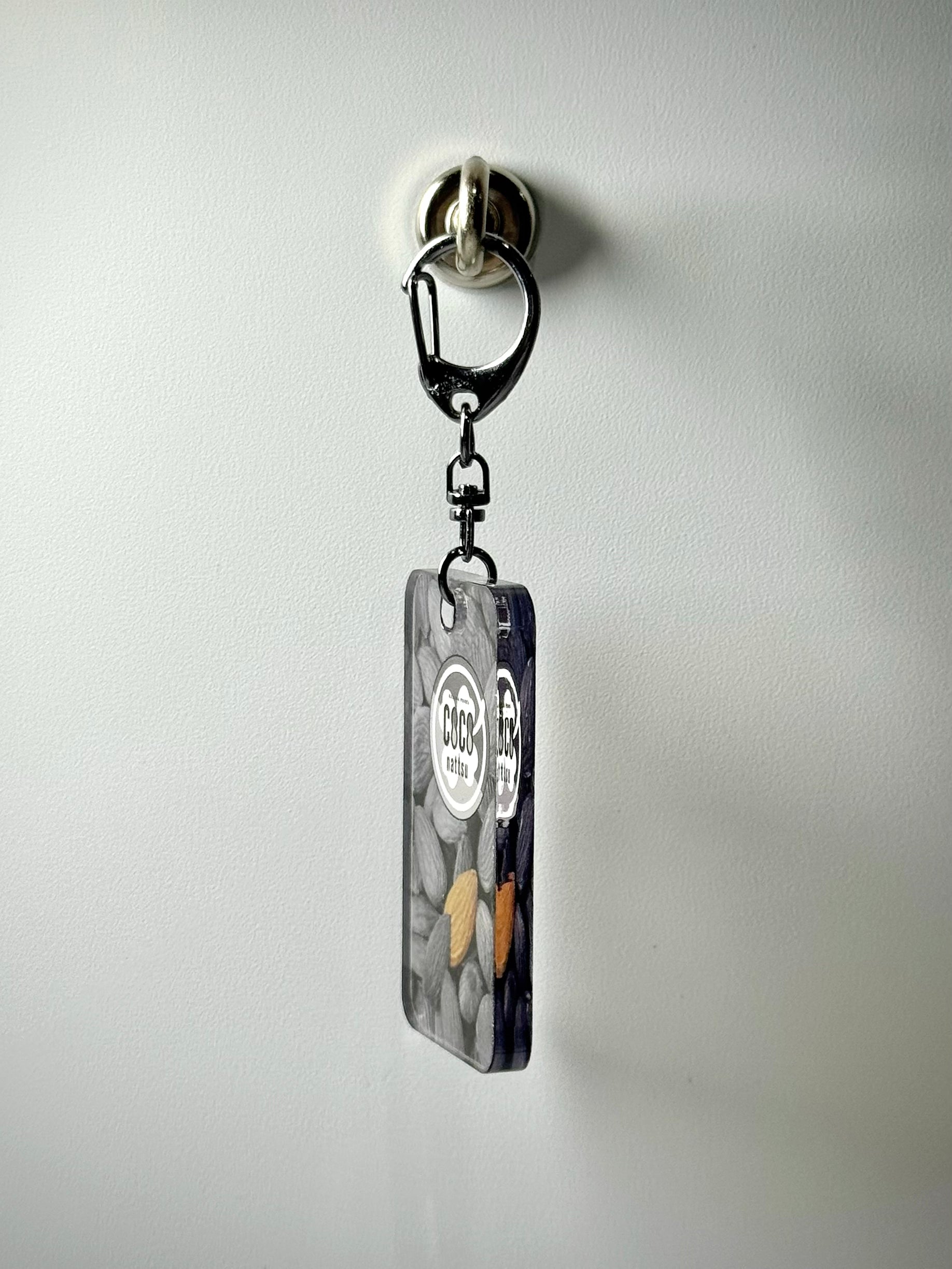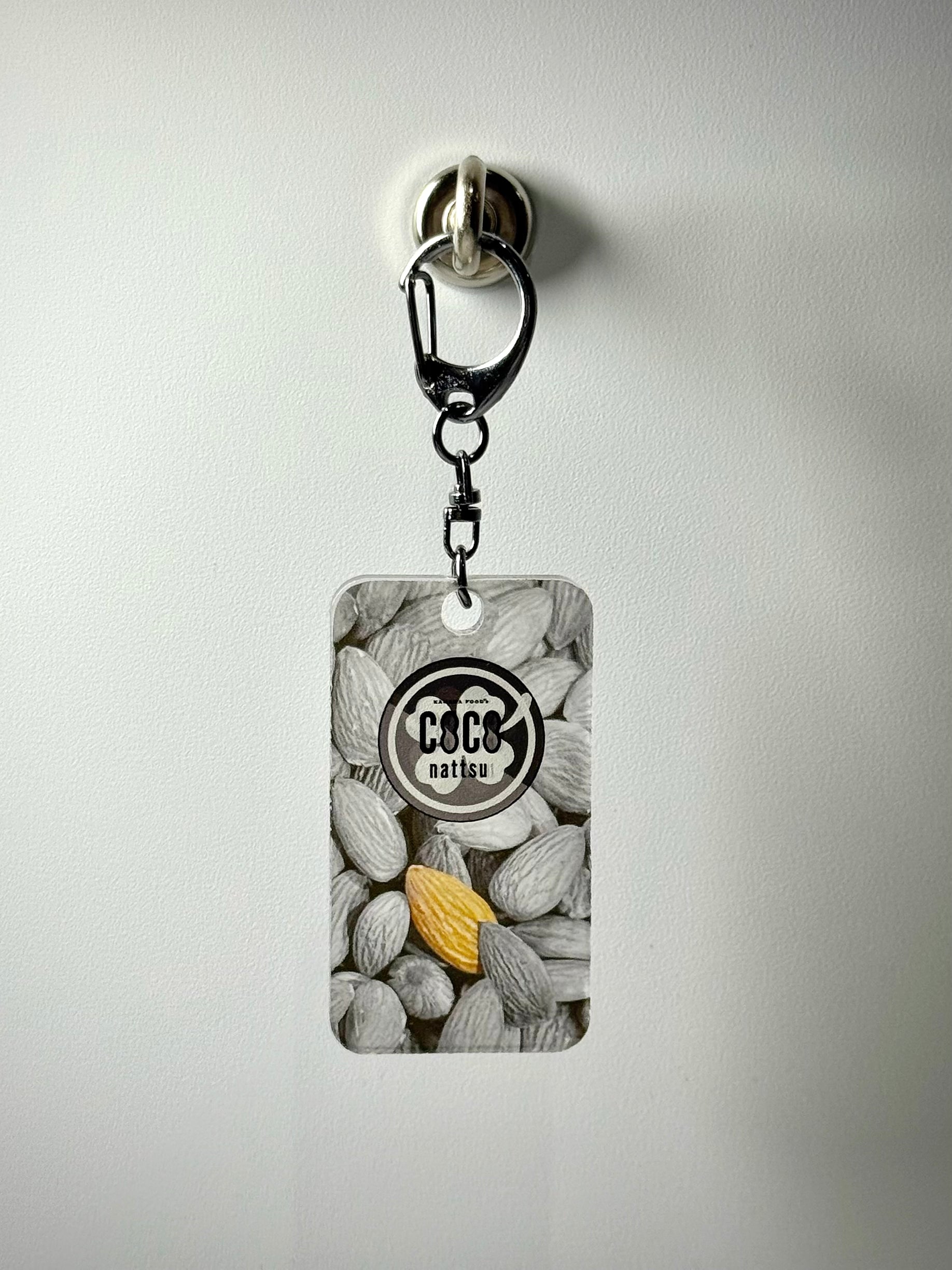 程よい厚みで高級感のあるアクリル素材を使用。美しい透け感と、アーモンドをそのまま閉じ込めたようなデザインが印象的です。バッグや鍵などにアクセントを添えることができます。