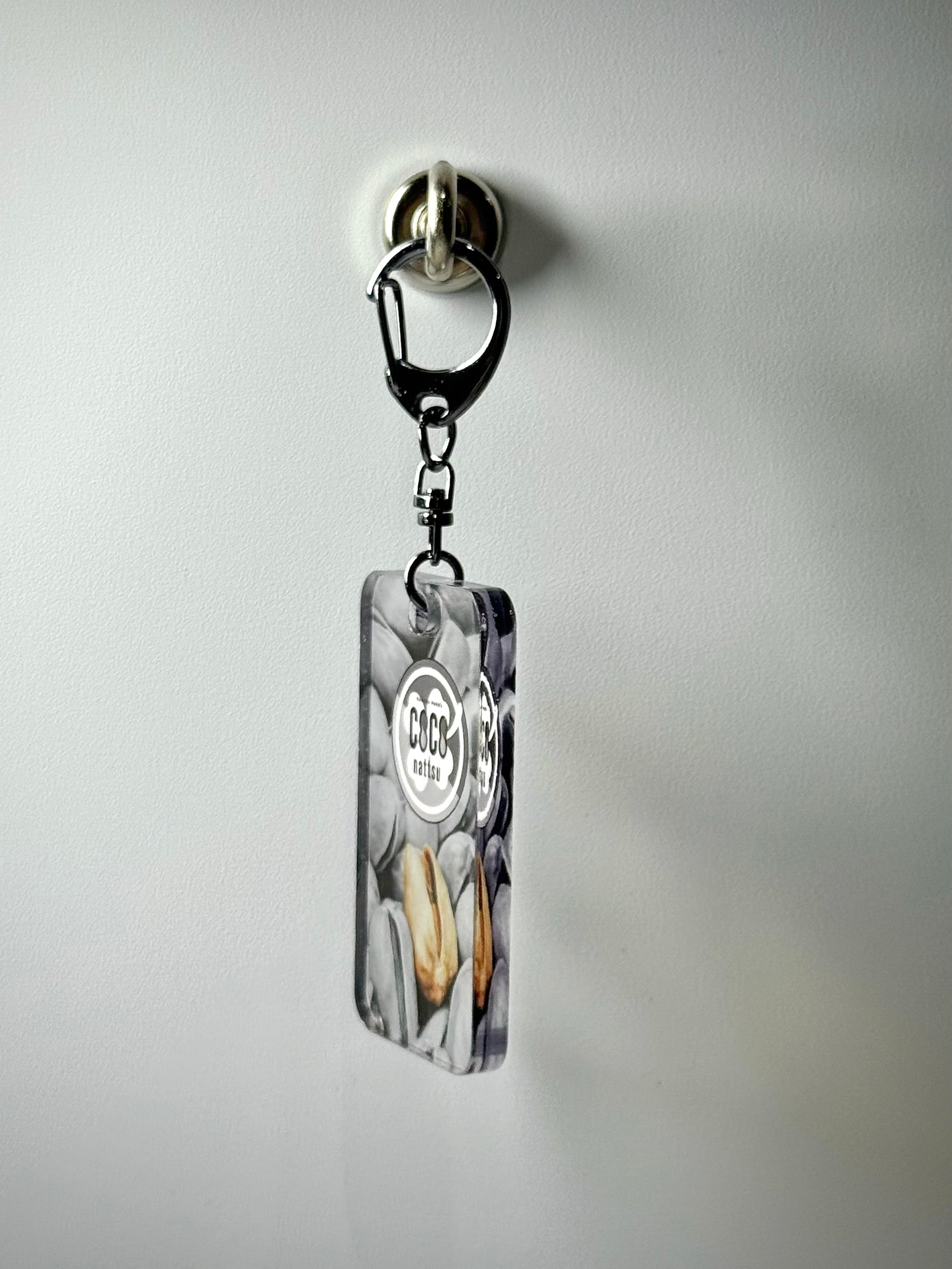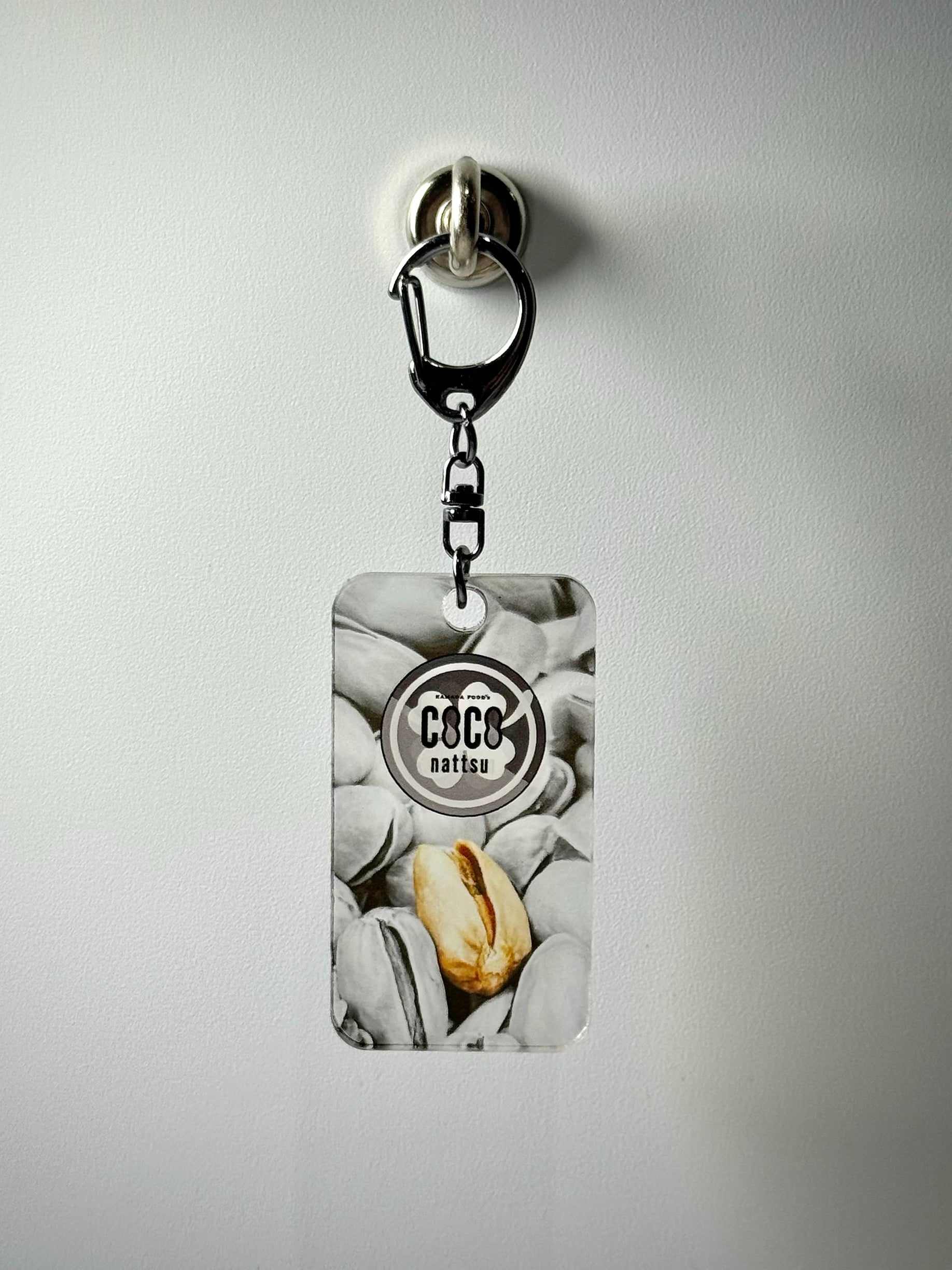 程よい厚みで高級感のあるアクリル素材を使用。美しい透け感と、ピスタチオをそのまま閉じ込めたようなデザインが印象的です。バッグや鍵などにアクセントを添えることができます。