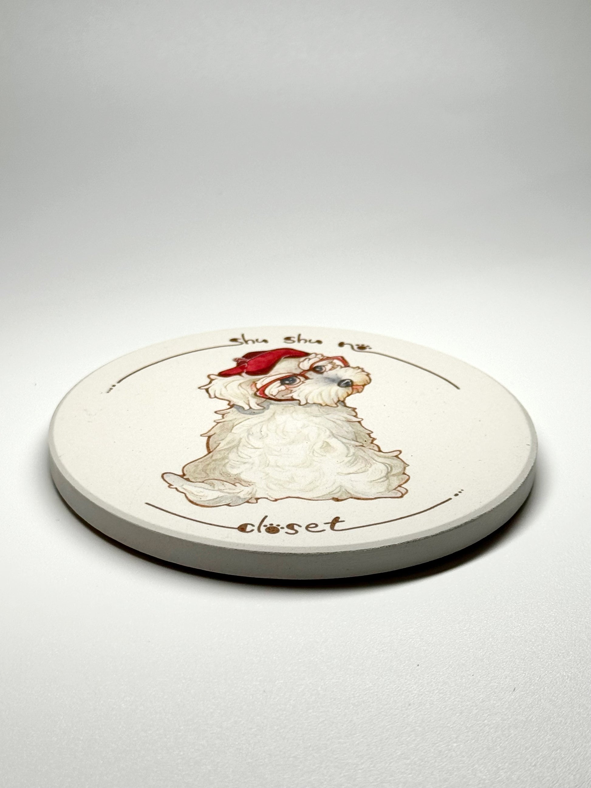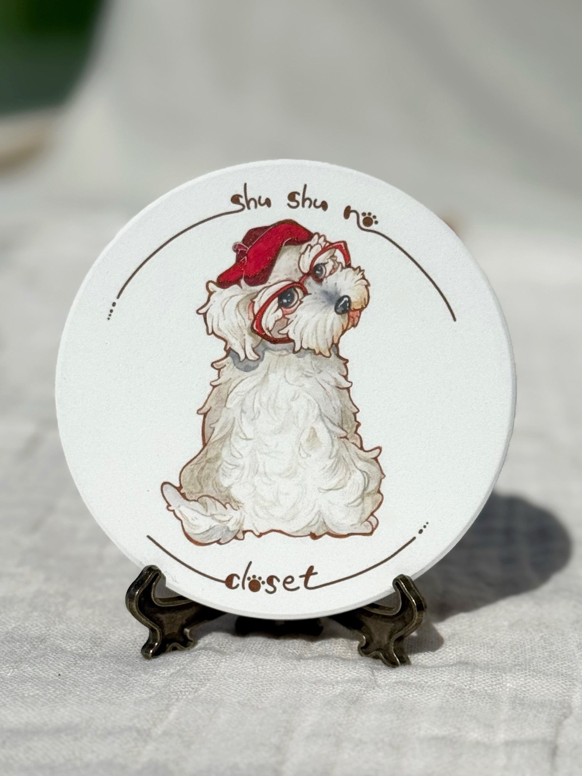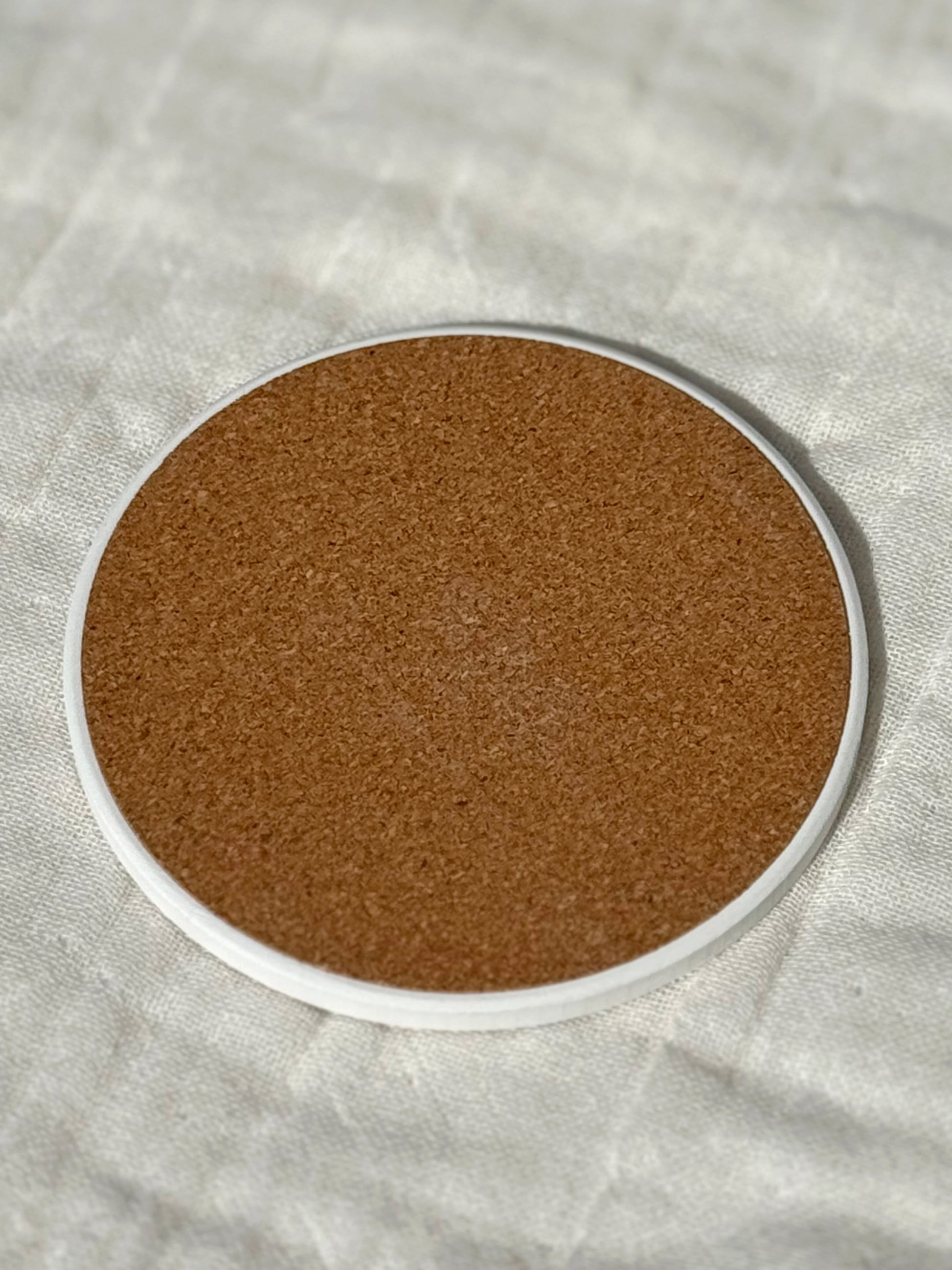 吸水性に優れ、裏面はコルクで滑りにくい白雲石コースターを使用。お茶やコーヒーの時間にほっと癒しを添えてくれます。小さなイーゼルに飾っても可愛いです。