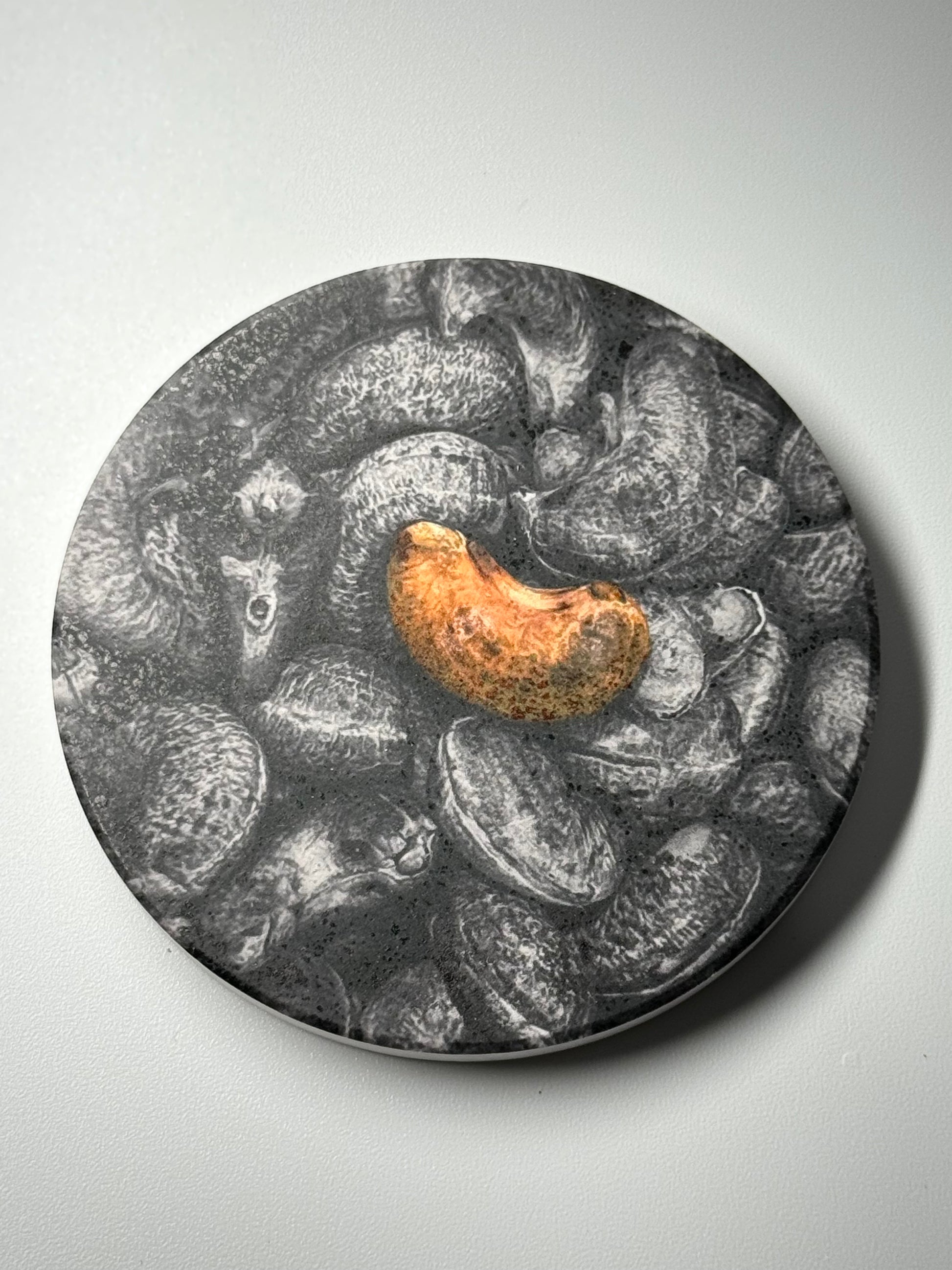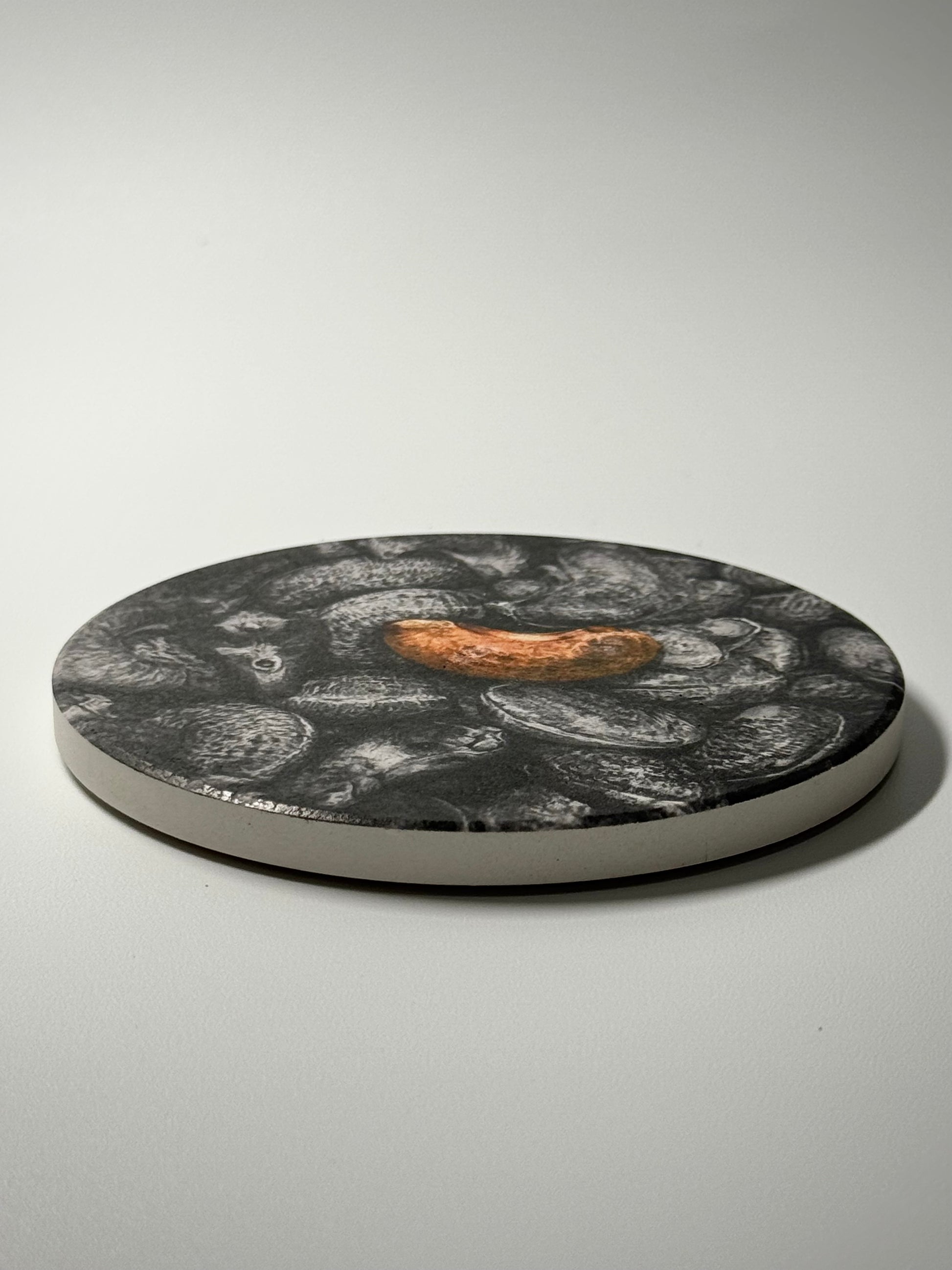 吸水性に優れ、裏面はコルクで滑りにくい白雲石コースターを使用。モノトーンをベースにワンポイント色を添えて、シックさとカジュアルさを兼ね備えました。どんなグラスにも合わせやすく、日常使いにぴったりです。